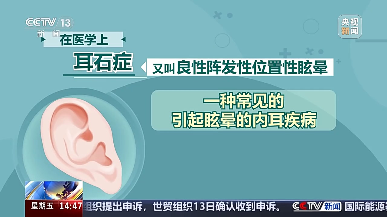 在醫學上,耳石症又叫良性陣發性位置性眩暈,是一種常見的引起眩暈的內耳疾病。理論上,任何能導致耳石脱落的因素,都可能誘發耳石症,比如外傷、維生素D缺乏、睡眠不足、激素水平變化等。