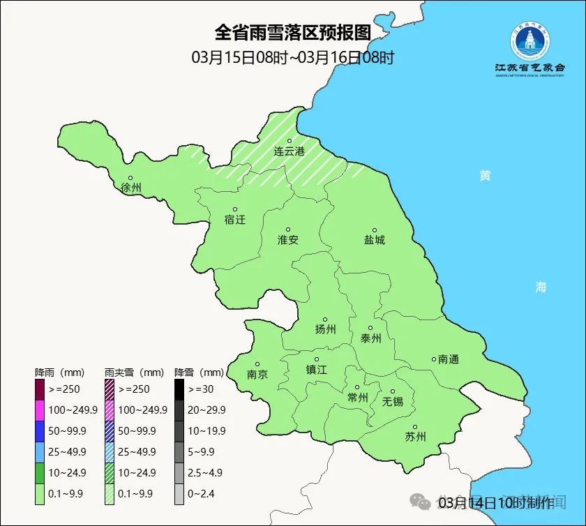3月15日08時至3月16日08時,淮北北部地區陰轉陰有小雨或小雨夾雪,其他地區陰有小雨。最高温度:本省西北部地區12~13℃,其他地區10℃左右;最低温度:淮北地區2℃左右,本省東南部地區5~6℃,其他地區4℃左右。全省偏北風4-5級。