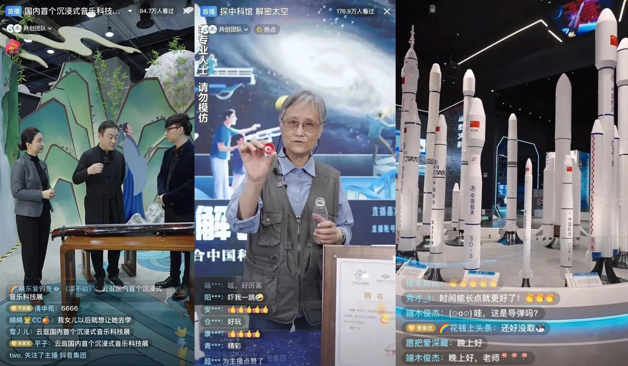 今年3月春季開學季到來之際,抖音還推出“知識課堂”——院士專家等講解博物館的長視頻合集。該合集包含9集精彩講解,每集平均時長兩小時,整合了抖音自2023年起與中國科學技術館、中國航天博物館、湖南博物院、殷墟博物館、中國古動物館(保定自然博物館)等多家博物館合作開展的直播逛館科普活動內容。