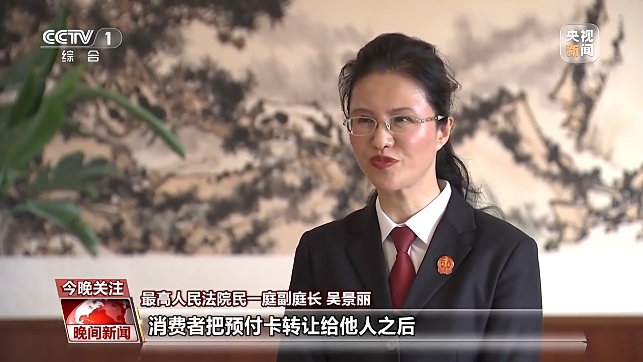 *最高人民法院民一庭副庭長 吳景麗:*消費者把預付卡轉讓給他人之後,只要通知了商家,這種轉讓行為就是有效的。受讓人不僅可以享受原消費者相應的權利,還可以要求商家進行更改名稱或者密碼,這樣就解決了轉卡難的問題。