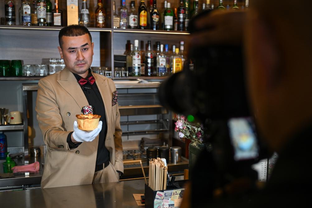 新華社烏魯木齊3月14日電(記者苟立鋒 丁磊)見到依木拉·亞爾買買提時,他正和團隊在一家咖啡店裏拍攝新疆特色飲品——饢咖啡。身着一身西裝禮服、手戴白手套,只見他在各種鏡頭前往杯子形狀的饢里加入滾燙的牛奶、咖啡,一杯新疆版的“饢布奇諾”熱乎上桌。