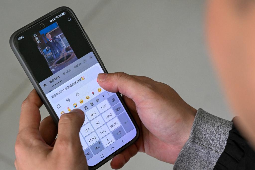 在新疆伊犁哈薩克自治州察布查爾錫伯自治縣,依木拉·亞爾買買提在回覆網友留言(3月11日攝)。新華社記者 丁磊 攝