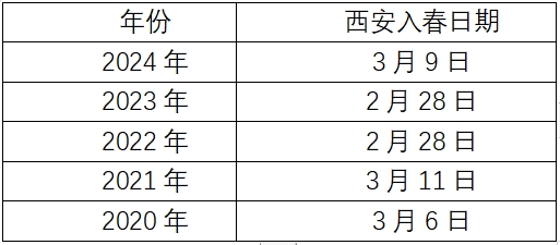 *依據《氣候季節劃分》規定,西安市涇河國家基本氣象站監測數據顯示,3月9日為西安今年入春日。結合歷史氣象資料分析,西安常年的入春時間是3月15日,今年較常年偏早6天。*不過,從近五年西安最早入春時間來看,今年與去年持平。