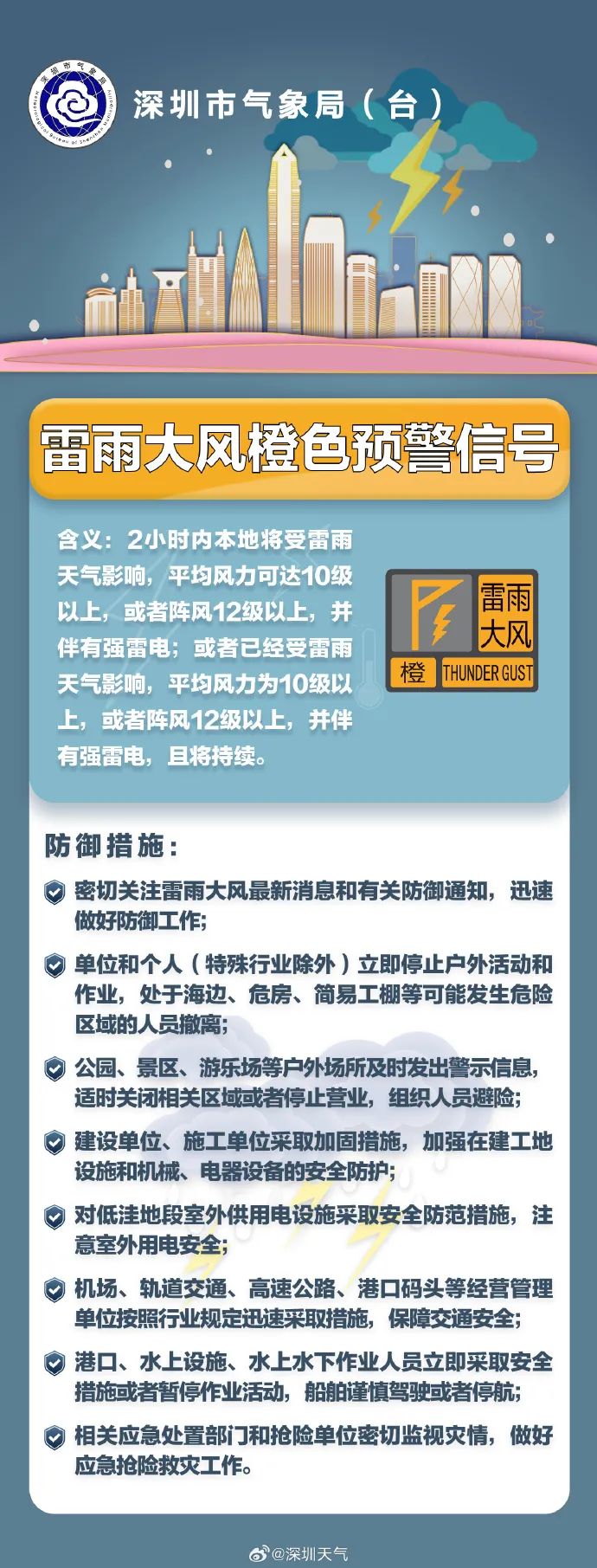 暴雨+雷雨+大風!深圳天氣發佈橙色預警!