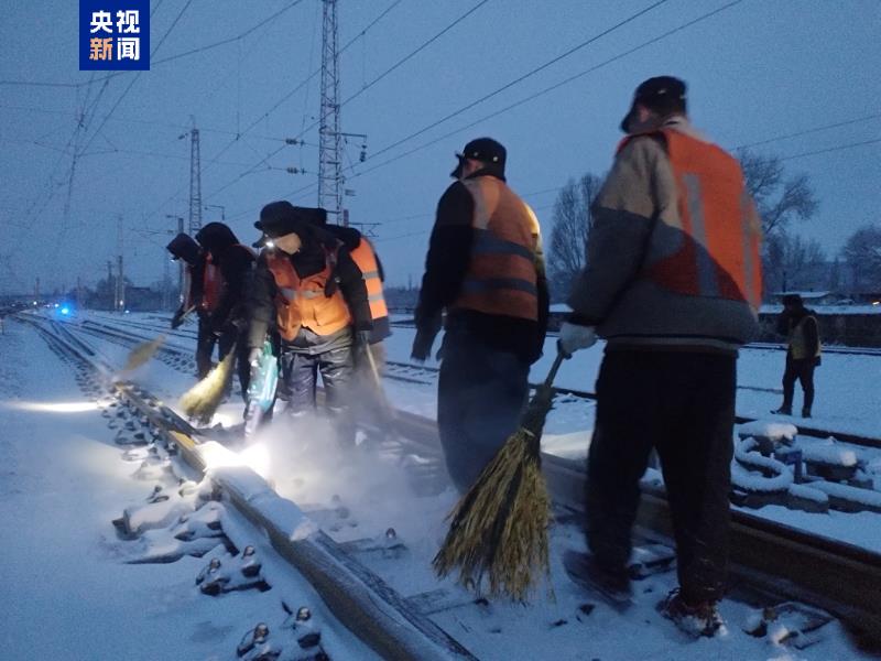 各車站和工務等系統組織除雪隊員,利用鼓風機等除雪工具對線路設施設備的積雪進行不間斷清掃,特別是針對道岔等重點部位的積雪結冰隨下隨清,防止出現道岔轉換故障,保證列車特別是旅客列車、高鐵動車組列車運行安全。