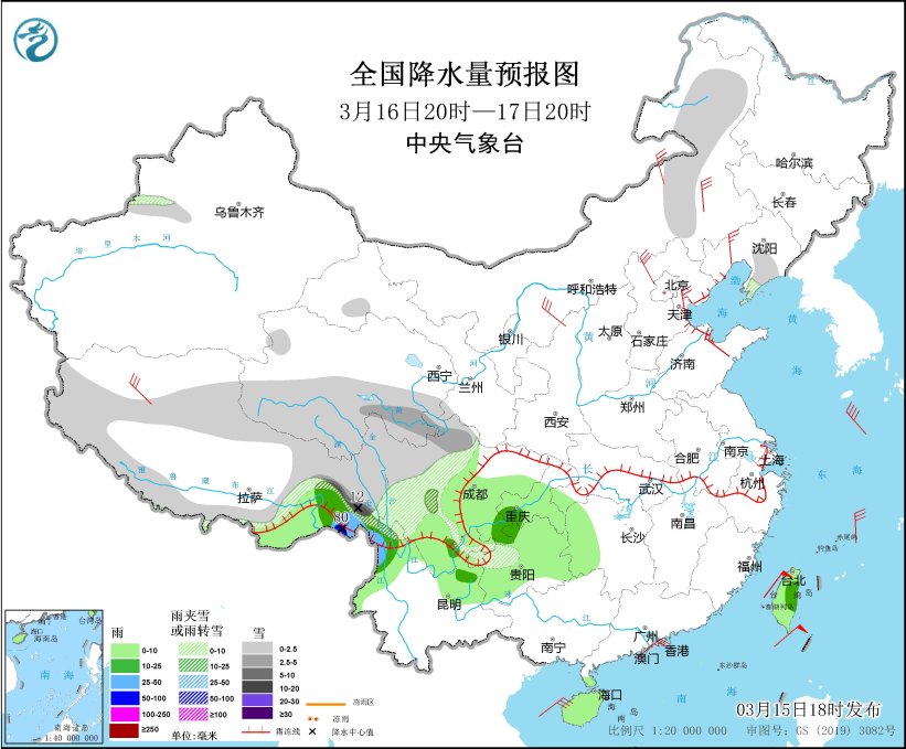 此外,3月16至17日,遼東半島、山東半島將有小到中雪,局地大雪;西藏東部、川西高原將有中到大雪,局地暴雪,西藏東南部、雲南西北部將有中到大雨。