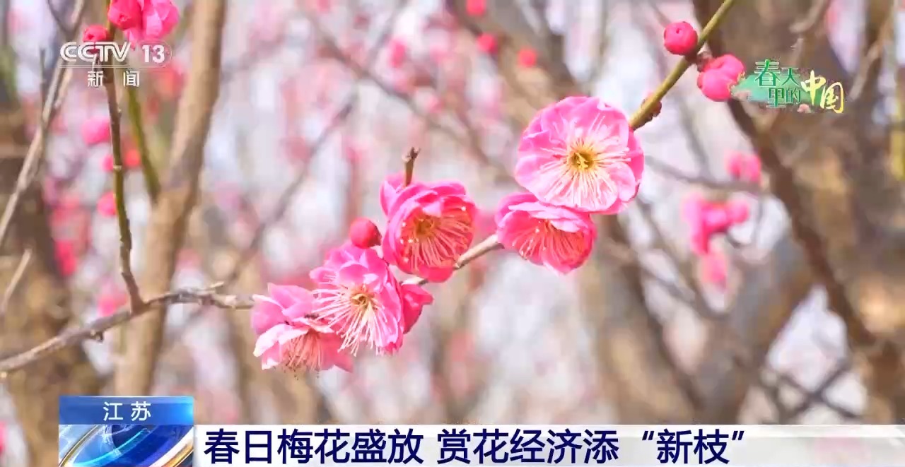 眼下,江蘇多地梅園繁花似錦,進入盛花期。嬌豔的梅花不僅扮靚了春日景緻,還催熱“賞花經濟”,從傳統的觀光賞花,一路延伸至培育、加工等領域。