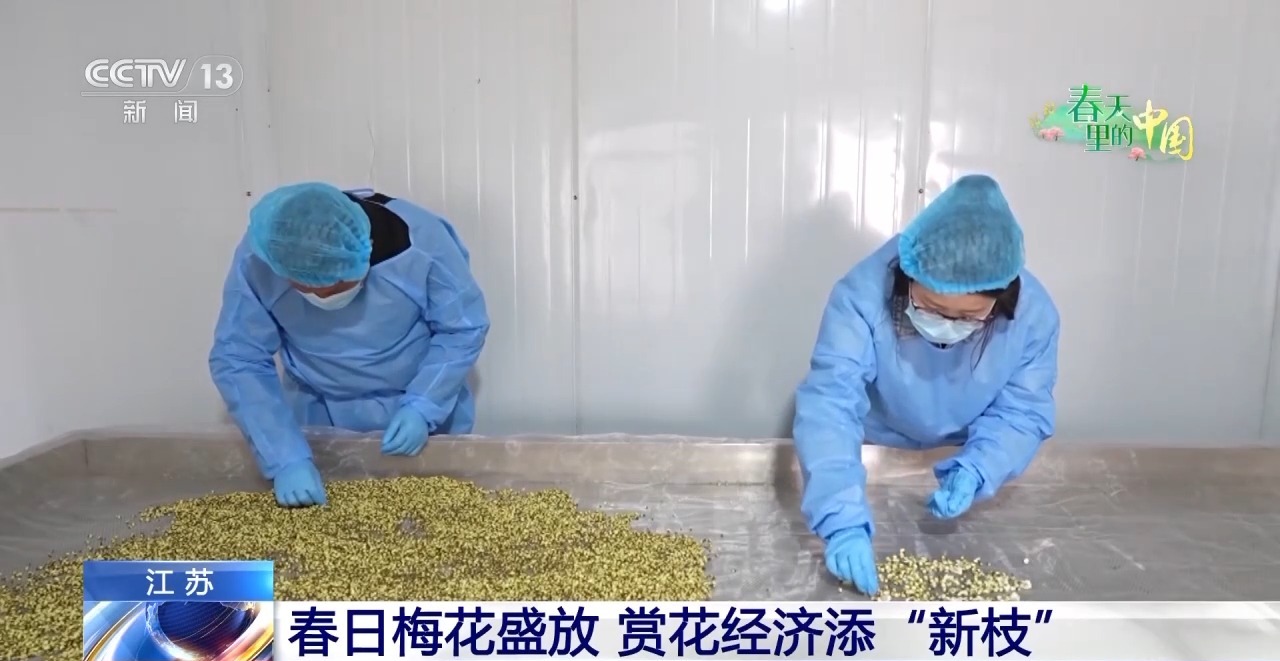 在這家梅花加工廠,工人們將採摘下來的新鮮梅花進行篩選、烘乾,製作成清香怡人的梅花茶。