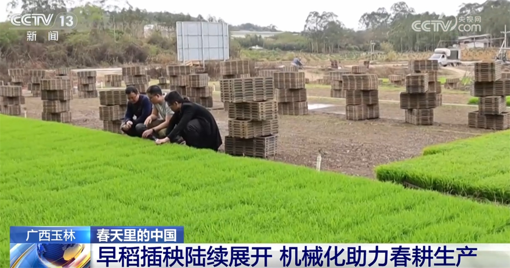 眼下,我國南方多地的早稻插秧工作已陸續展開。在廣西玉林,有部分秧苗生長到了移栽大田的標準,為了能儘快完成水稻栽插,當地投入了大量的機械進行作業。