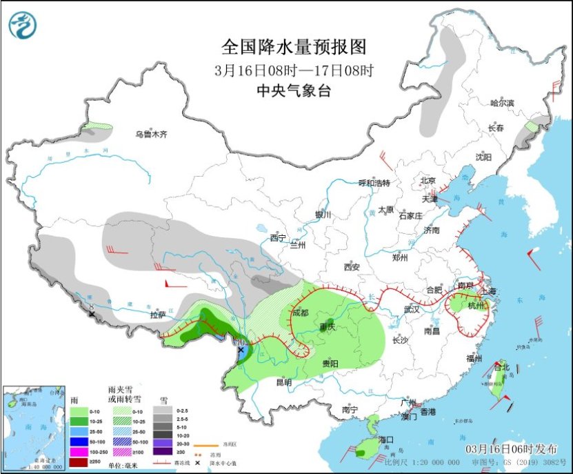 預計今天,西藏北部和南部、青海南部、川西高原北部等地部分地區有小到中雪或雨夾雪,局地有大雪(5~8毫米)。西藏東部、西南地區東部和南部等地部分地區有小到中雨,其中,西藏東南部、雲南西北部等地部分地區有大雨(25~40毫米)。