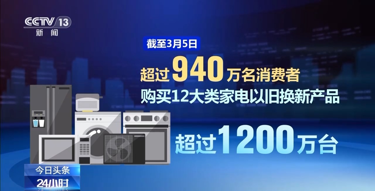商務部數據顯示,截至3月5日,超過940萬名消費者購買12大類家電以舊換新產品超過1200萬台,已有超過3400萬名消費者申請了超過4200萬件手機等數碼產品購新補貼。