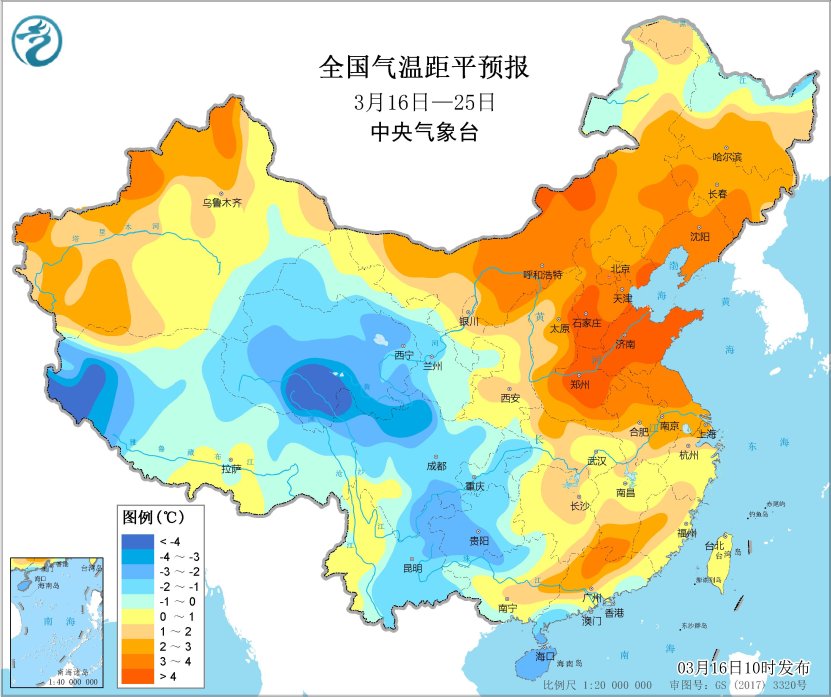 未來10天,新疆北部和西部、內蒙古、東北地區大部、華北及黃淮、江南、華南等地平均氣温較常年同期偏高1~3℃,其中內蒙古中部、華北南部、黃淮北部等地的部分地區偏高4~6℃;青藏高原、四川西部、雲貴等地平均氣温偏低1~3℃;全國其餘大部分地區平均氣温基本接近常年。