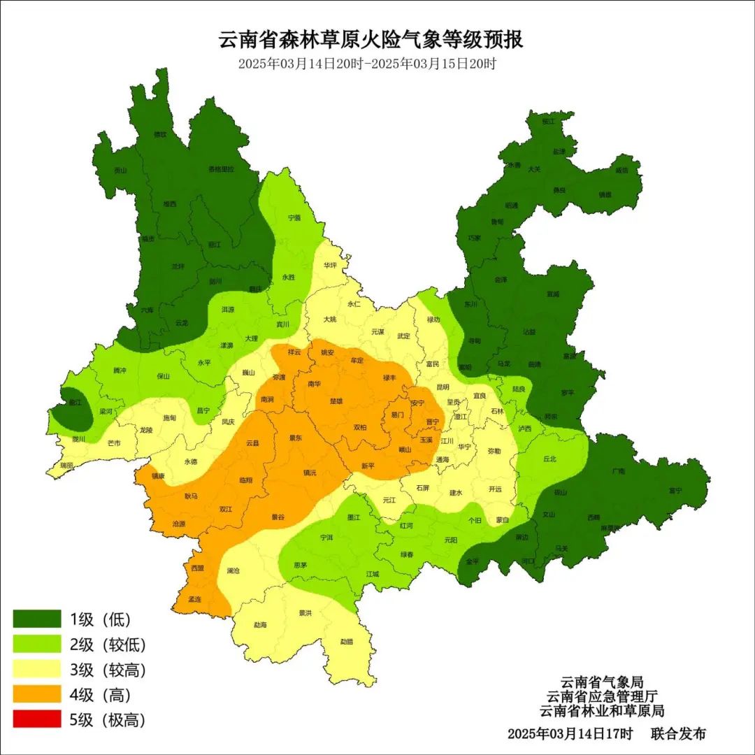 2025年3月14日20:00~3月15日20:00,迪慶州德欽縣、維西縣,怒江州貢山縣、福貢縣、蘭坪縣發生滑坡泥石流的風險高;迪慶州西部,怒江州大部發生滑坡泥石流的風險較高。