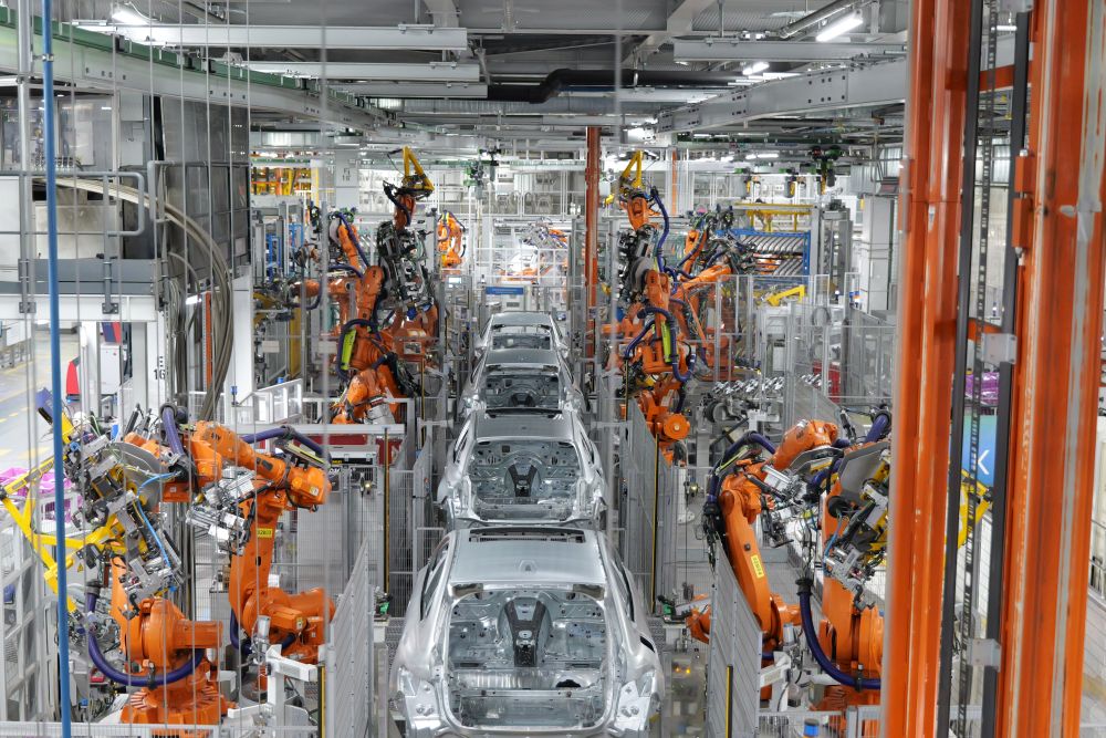 這是2月27日在德國慕尼黑拍攝的寶馬集團工廠內的流水線。新華社記者 邰思聰 攝