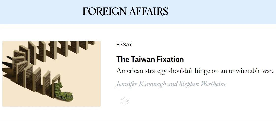 譚主注意到,最先在島內引發這波震動的,是三週前美國知名期刊《外交事務》的一篇文章。多家島內媒體認為,此文堪稱“棄台論”的最新代表作,顯示美國正圍繞“台灣不重要”做輿論鋪墊,放風造勢。*譚主翻看這篇題為《台灣執念:美國的戰略不應押注於一場無法取勝的戰爭》的文章,發現它從軍事和經濟上對台灣的重要性進行了“切割”,不僅指出美國的區域利益不應受到台灣命運的影響,還強調美國正在積極佈局國內的半導體產業,以應對“失去台灣”。*無獨有偶,美國內閣團隊關鍵人物、國防部副部長提名人科爾比近日在聽證會上表示,台灣並非美國“生死攸關”的利益,美國明確承諾“保衞”台灣成本大於收益。台灣“風傳媒”直指,這可以看出,美國不僅不會為台而戰,而且已經在為“棄台”預作佈局。