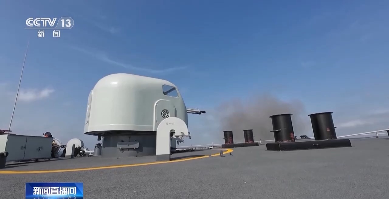 在編隊各艦號手精確操作下,數枚炮彈呼嘯而出,對“敵”目標實施有效火力打擊。