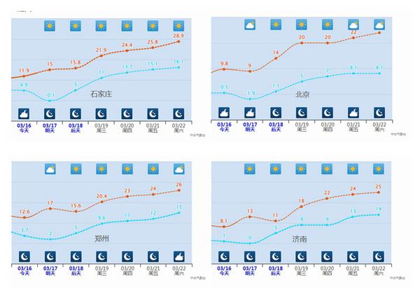 這次升温也將使得北京、天津、河北、山東、河南一帶或邁入春天的大門。