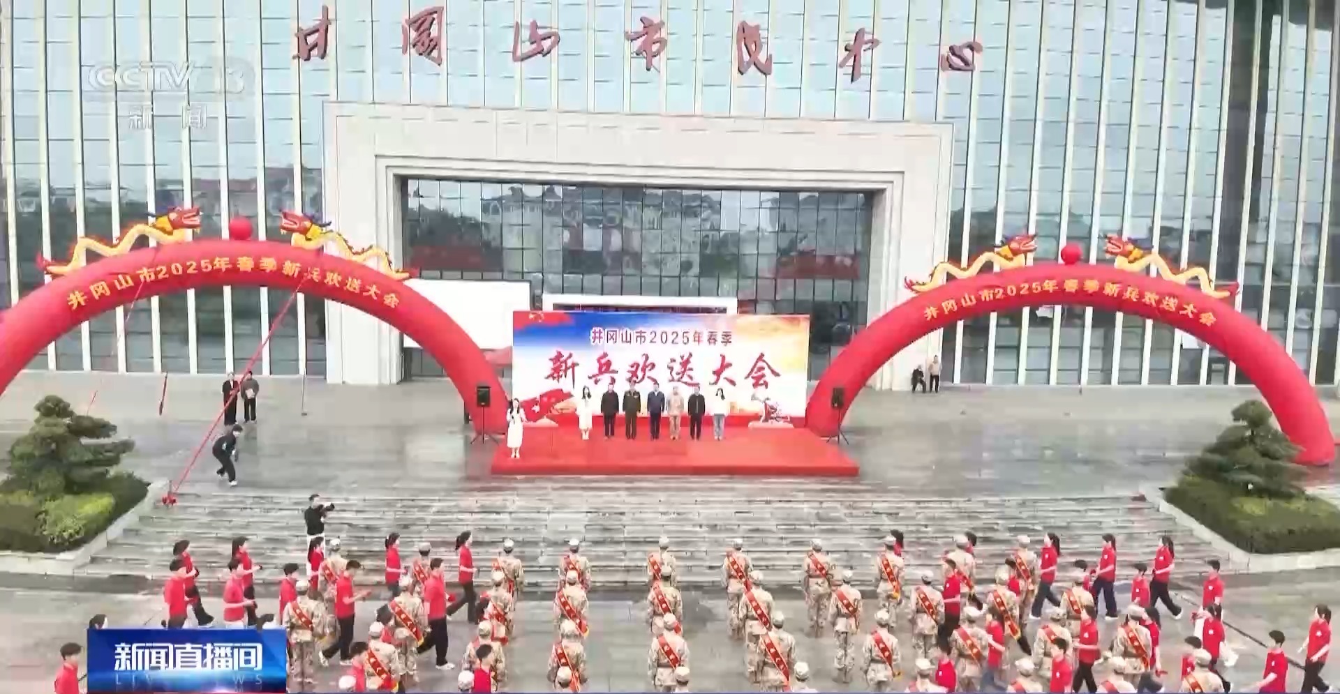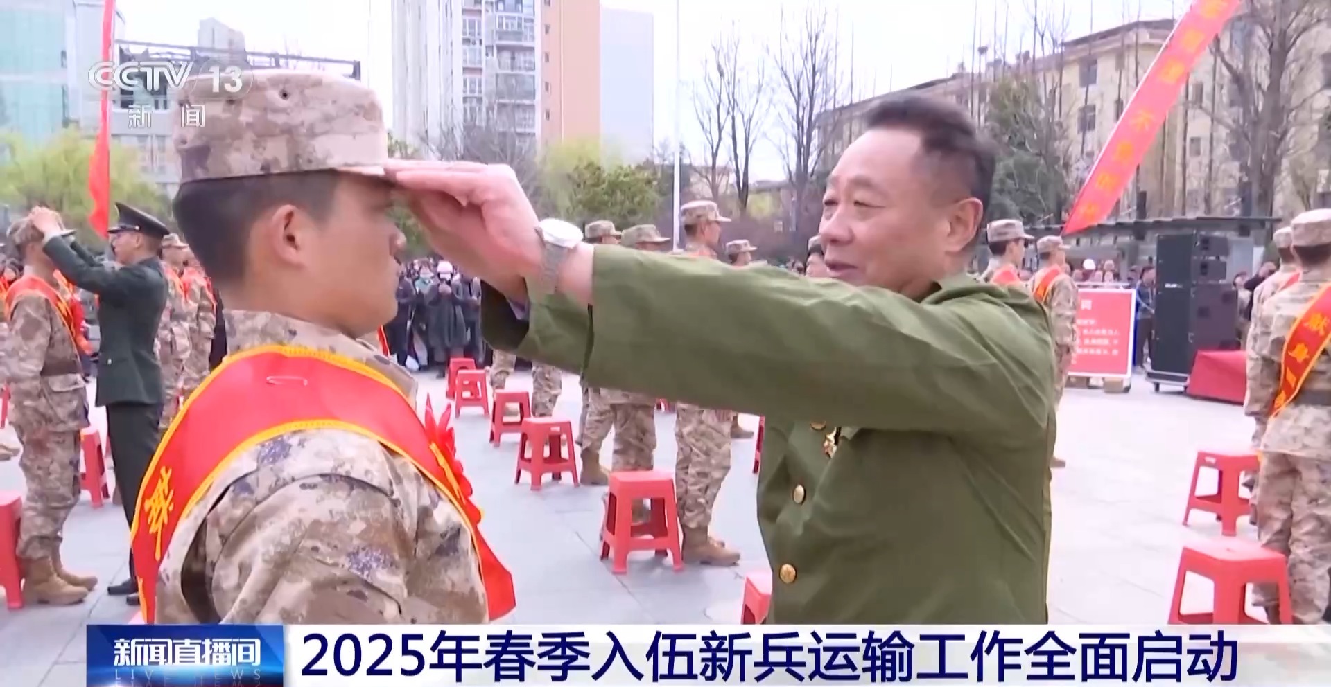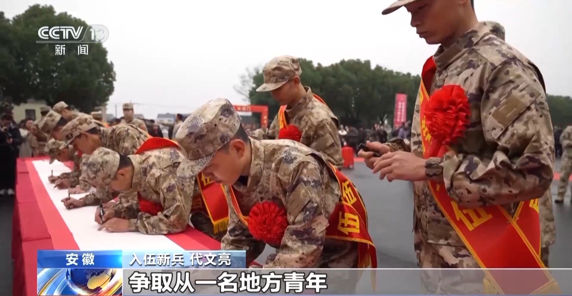在甘肅靜寧、山東龍口,新兵們胸佩紅花、肩披綬帶,帶着家人的殷切希望與祝福,懷着對火熱軍營的憧憬和嚮往,即將奔赴祖國各地,踏上建功立業、從軍報國的新徵程。