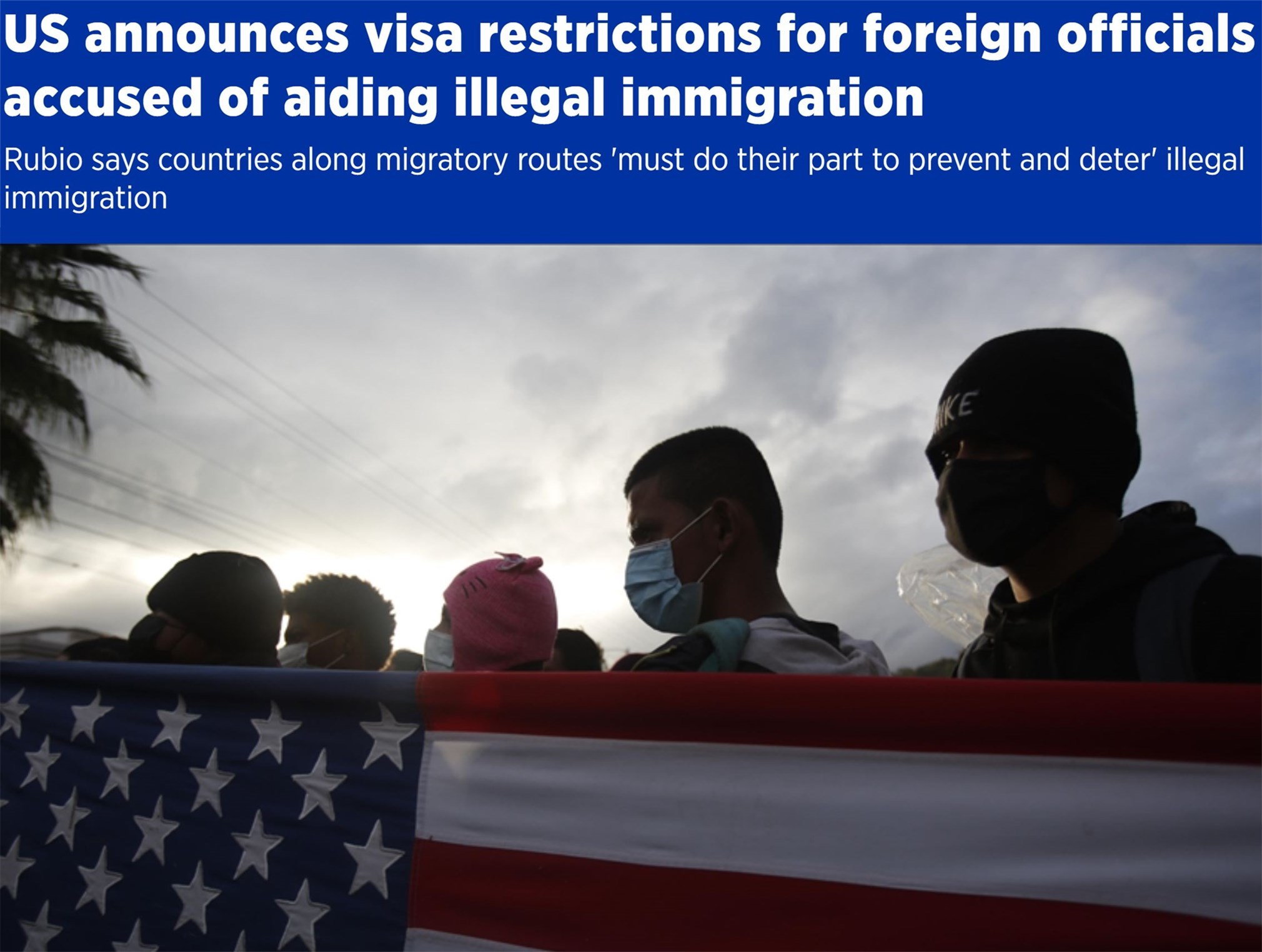 美國國務卿魯比奧本月初發表聲明,宣佈針對外國官員及其他“協助非法移民進入美國”的人員實施簽證限制。