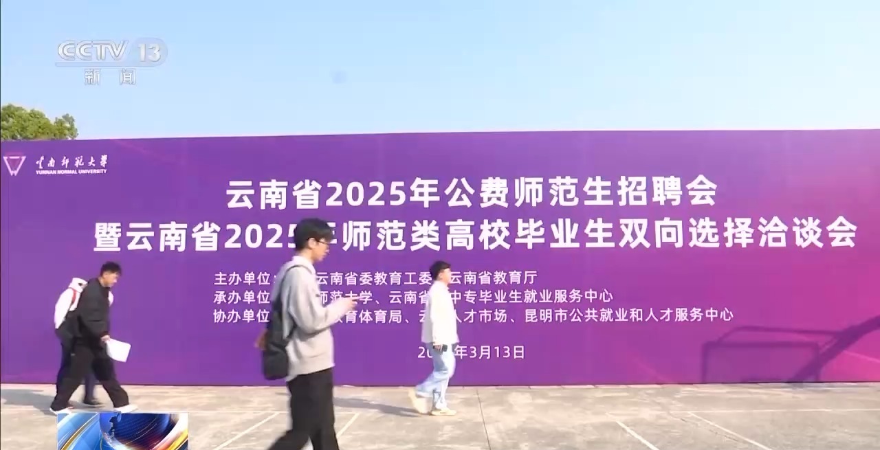 雲南省近日舉行了2025年公費師範生招聘會暨2025屆師範類高校畢業生雙選會。來自雲南、廣西、廣東、北京等12個省(市、自治區)的533家用人單位提供1萬多個崗位。招聘會現場設置了公費師範生專區、國家“優師計劃”專項服務區等,不少大中小學負責人到現場招攬人才。