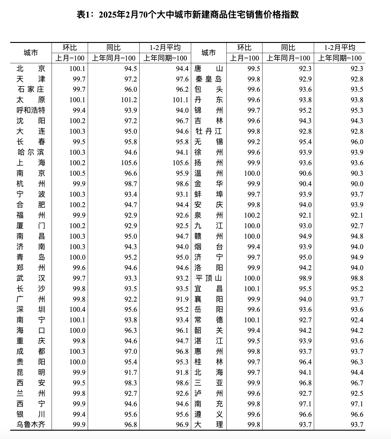 國家統計局城市司首席統計師王中華解讀指出,從環比看,受春節銷售淡季等因素影響,70個大中城市中,各線城市商品住宅銷售價格總體穩中略降,其中一線城市新建商品住宅銷售價格上漲。從同比看,各線城市商品住宅銷售價格降幅均繼續收窄。