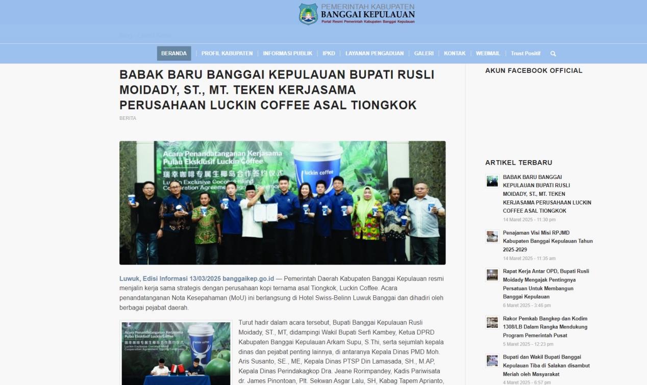 【環球網財經綜合報道】3月17日消息,據印度尼西亞邦蓋羣島縣政府公告及印尼媒體報道,瑞幸咖啡3月13日與邦蓋羣島縣政府簽署《合作備忘錄》。瑞幸咖啡攜手合作夥伴在印尼“包下”邦蓋羣島,作為生椰拿鐵主要原料椰漿的專屬優質原產地,並以“瑞幸咖啡專屬生椰島(Luckin Exclusive Coconut Island)”命名。邦蓋羣島縣政府授權瑞幸咖啡及合作伙伴享有邦蓋羣島椰子資源的獨家採購權。同時瑞幸咖啡宣佈,未來5年將聯合合作伙伴在邦蓋羣島採購約100萬噸符合相關標準的椰子原料。