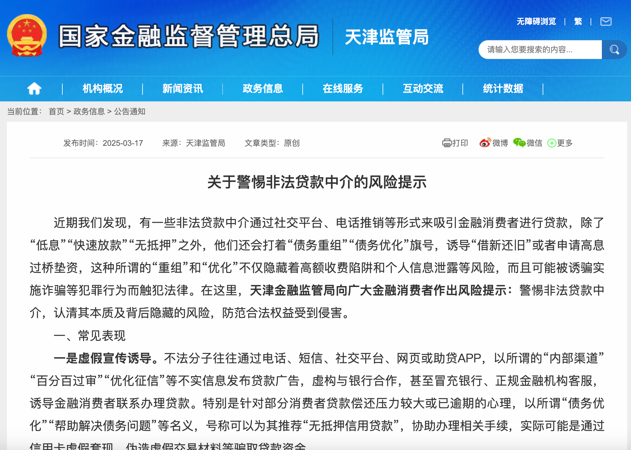 天津金融監管局發佈風險提示,警惕非法貸款中介