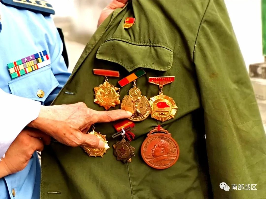 吳文南老前輩軍裝上的軍功章。圖片來源:南部戰區