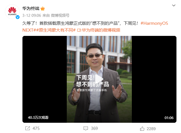 【環球網科技綜合報道】在科技迅猛發展的浪潮中,鴻蒙生態正以破竹之勢崛起,成為推動全球數字化變革的重要力量。它的出現,不僅打破了操作系統領域的傳統格局,更為各行各業的數字化轉型注入了全新活力,為用户帶來了全方位、沉浸式的創新體驗。3月 12日,餘承東發佈的一則視頻正式宣佈首款搭載原生鴻蒙正式版的 “想不到的產品”將於下週推出。