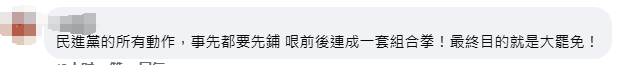還有人説,“民進黨的所有動作,事先都要先鋪好,前後連成一套組合拳!最終目的就是大罷免!”