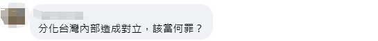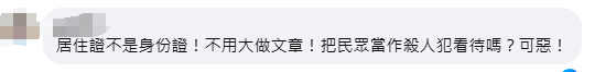 有人稱,“分化台灣內部造成對立,該當何罪?”“居住證不是身份證!不用大做文章!把民眾當作殺人犯看待嗎?可惡!”