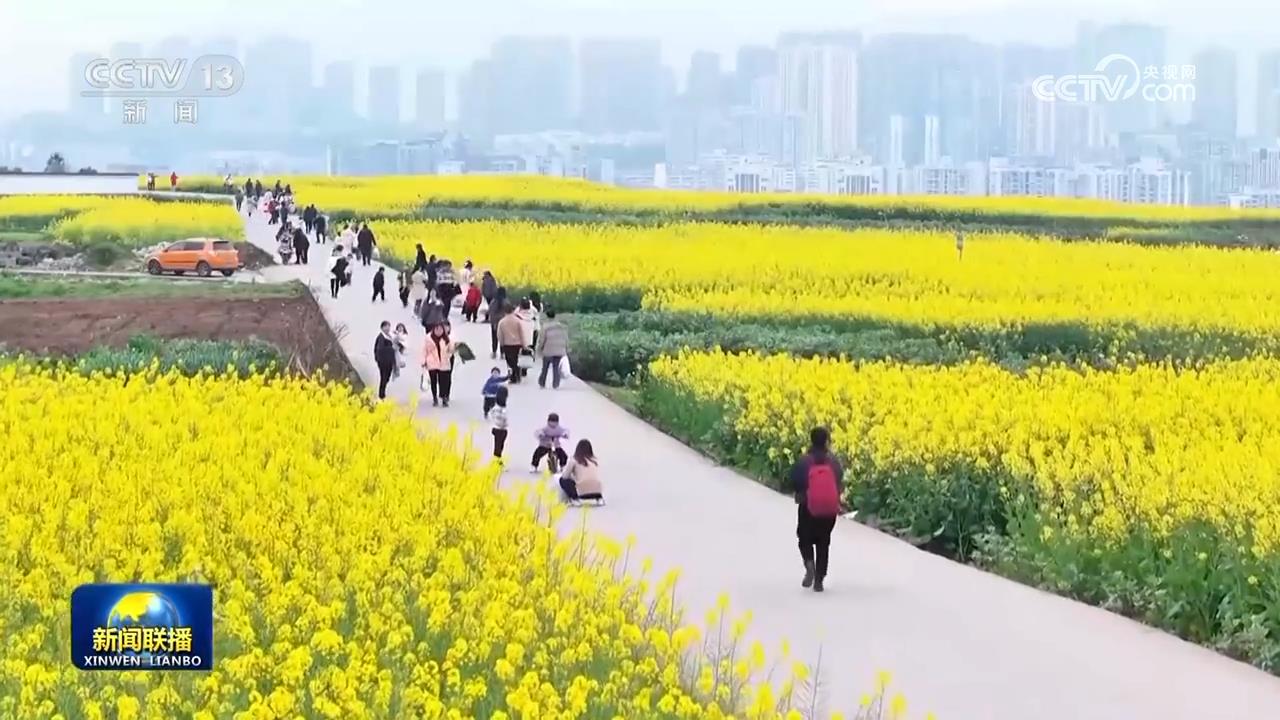 美麗經濟,助力鄉村振興。眼下,重慶忠縣20萬畝油菜花進入最佳觀賞期。在復興鎮油菜種植基地,當地開展賞花系列活動,大力發掘油菜榨油、菜用、蜜用等功能,不斷拓寬農民增收渠道。江西寧都近10萬畝油菜花迎來盛花期。在黃石鎮,金色的花海與古樸的村莊構成了美麗的田園畫卷,遊客們沉浸其中,流連忘返。當地充分利用“冬閒田”栽種油菜,通過農文旅融合有效助力鄉村振興。
