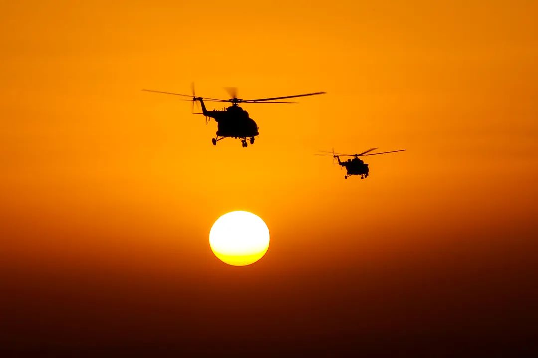 直升機羣迅速飛向目標