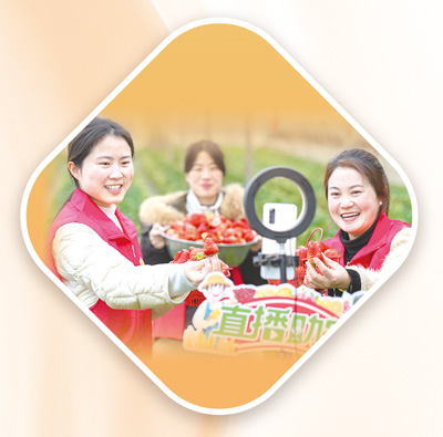 浙江省長興縣畫溪街道,青年黨員幹部通過網絡直播幫農户銷售新鮮草莓。