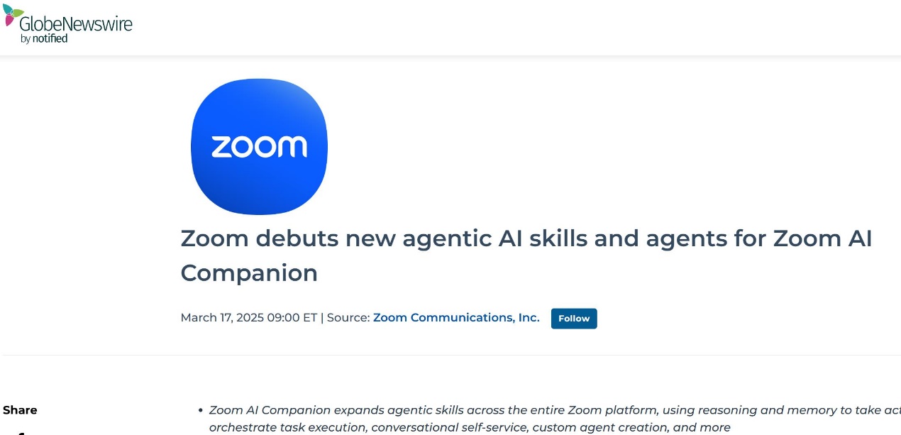 Zoom發佈Zoom推出全平台智能體產品AI Companion