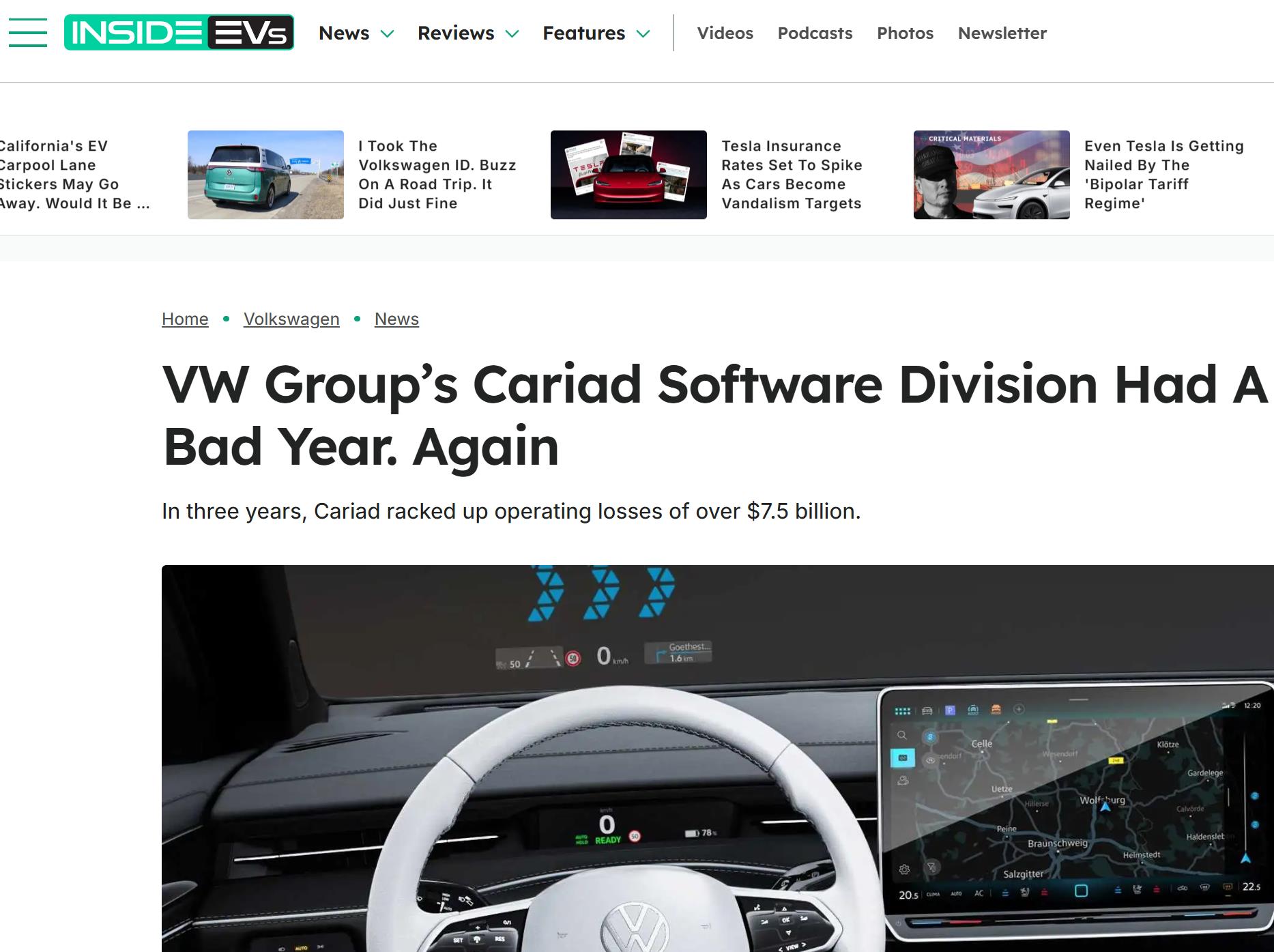 【環球網科技綜合報道】3月18日消息,據外媒insideevs報道,大眾汽車旗下的軟件部門 Cariad 曾被寄予厚望,被視為公司未來的核心技術支柱,然而近年來卻逐漸成為拖累集團財務表現的沉重負擔。