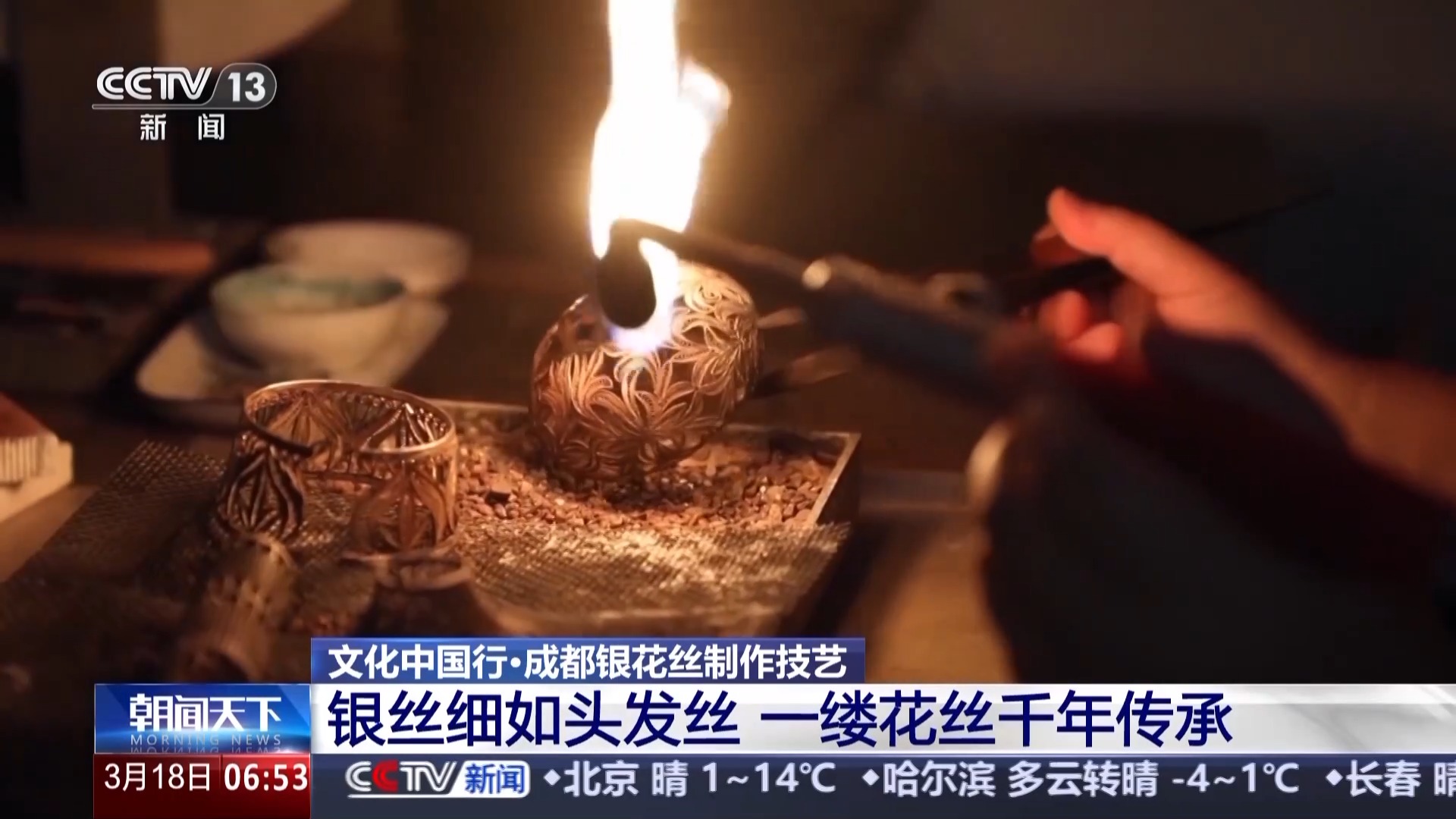 一把鑷子、一把剪刀、一塊耐火石棉板,粗細不等的銀絲,這樣一些看似簡單的工具和材料,經過銀花絲技藝傳承人的妙手,便可成就出一件件光彩奪目的銀花絲作品。今天的《文化中國行》,讓我們一起了解成都銀花絲。