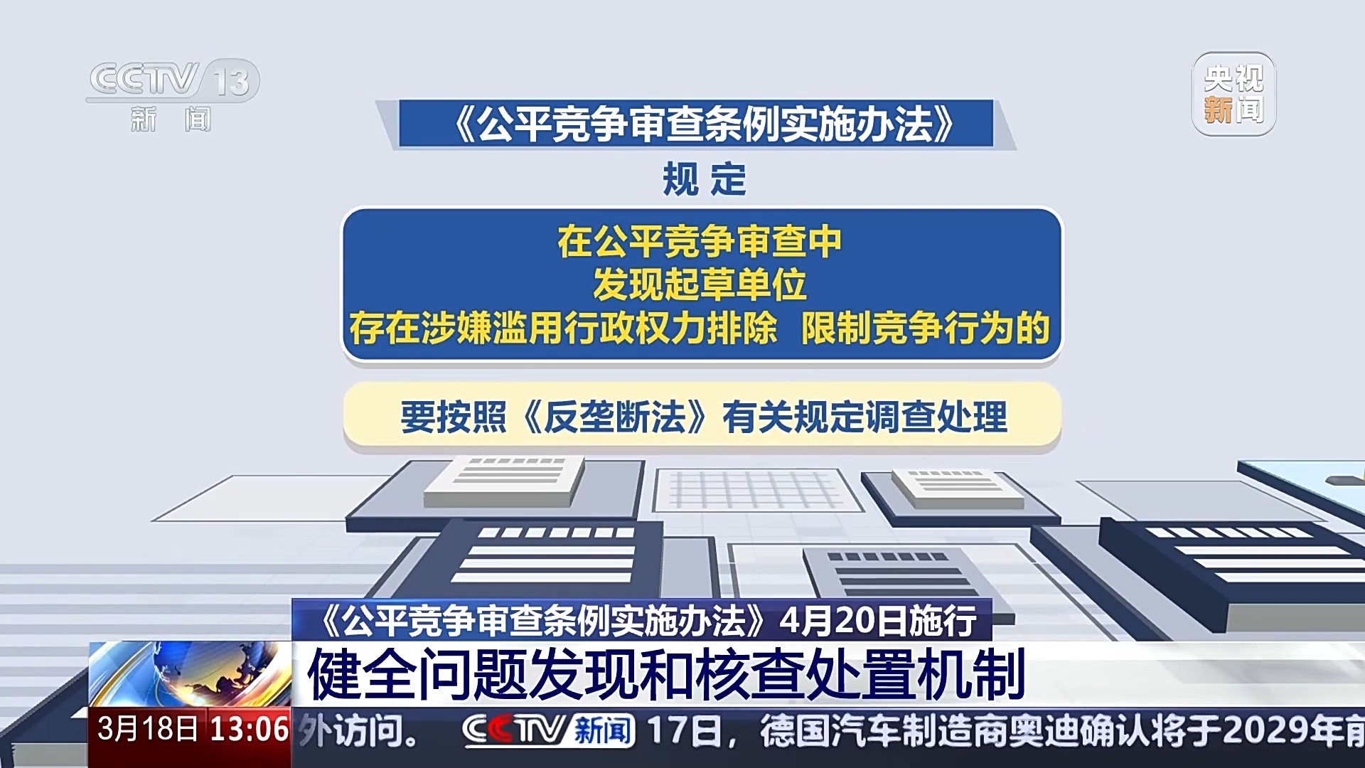 細化公平競爭審查標準 《公平競爭審查條例實施辦法》4月20日施行
