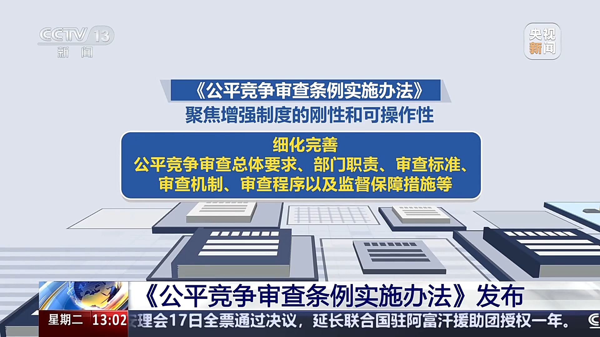 市場監管總局公佈的《公平競爭審查條例實施辦法》聚焦增強制度的剛性和可操作性,細化完善了公平競爭審查總體要求、部門職責、審查標準、審查機制、審查程序以及監督保障措施等。