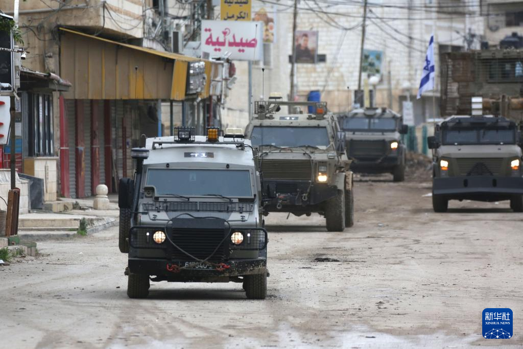 這是1月22日在約旦河西岸城市傑寧拍攝的以軍車輛。新華社發(尼達爾·艾仕塔耶攝)