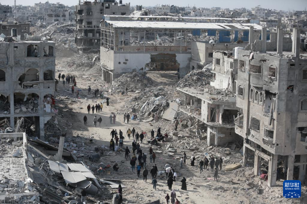 1月19日,巴勒斯坦人走在加沙地帶傑巴利耶難民營。新華社發(阿卜杜勒拉赫曼·薩拉馬攝)