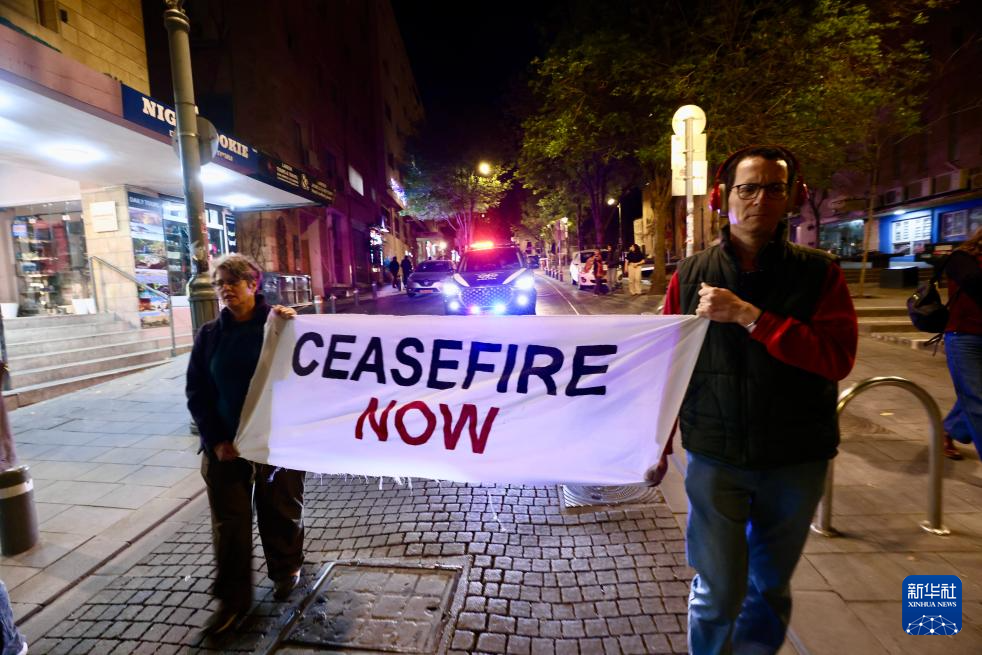 “我們不能割裂兩地人民的命運,不應把解救被扣押人員的訴求與加沙的苦難分開討論。”身穿帶有反戰標語T恤的以色列工程師埃迪對記者説。他的身後,巨大的標語牌格外醒目:“夠了!結束戰爭!”