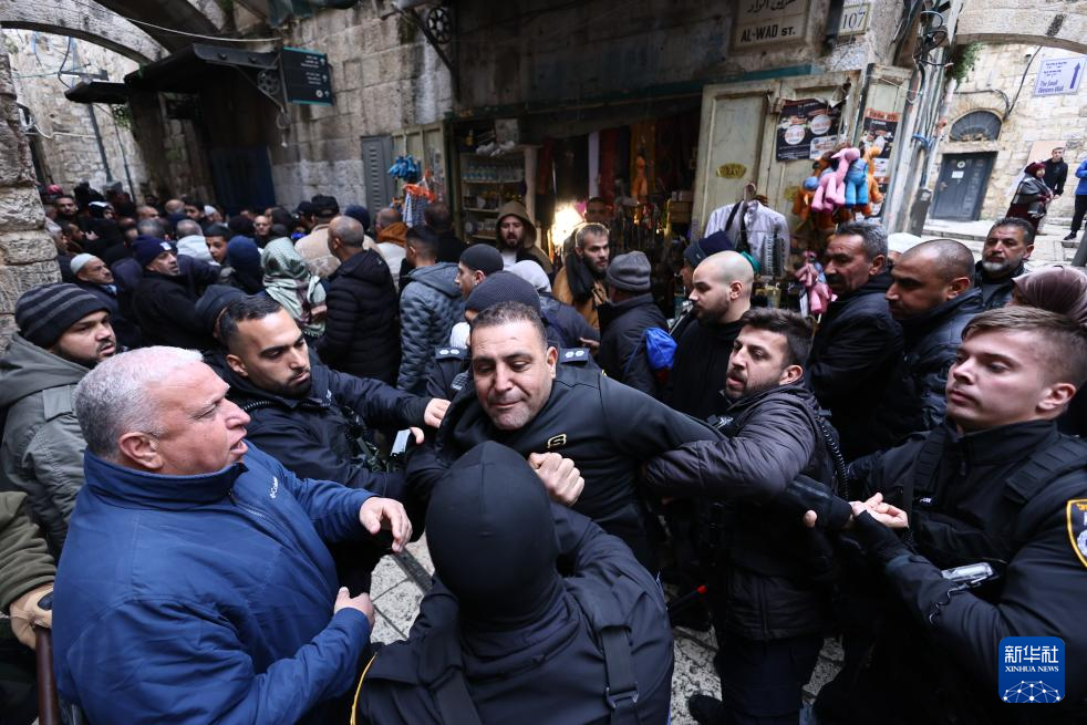 3月7日,在耶路撒冷老城,人們與警察發生衝突。新華社發(賈馬爾·阿瓦德攝)