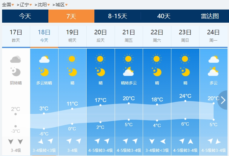 城市中,南北方都不乏升温猛烈的“尖子生”,升温過後的暖意遠超常年同期。像是瀋陽,今天最高氣温僅有3℃左右,明天將躥升至11℃上下,之後一直到23日,最高氣温將三步並兩步衝到24℃,達到常年5月中下旬的氣温水平。