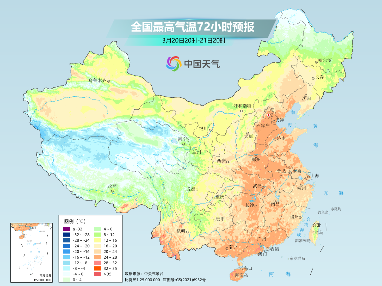明天開始,升温的勢頭還會更上一層,最高氣温20℃、25℃以上的範圍將迅速擴大,長江以北多地氣温將連創新高。到23日至24日,最高氣温20℃線將抵達內蒙古東南部至吉林中部一線,華北及其以南地區最高氣温可達25℃以上,河北南部、河南中北部以及福建、廣東、廣西、江西等地部分地區最高氣温或達30℃以上。
