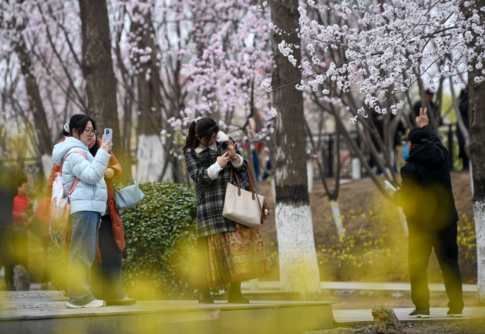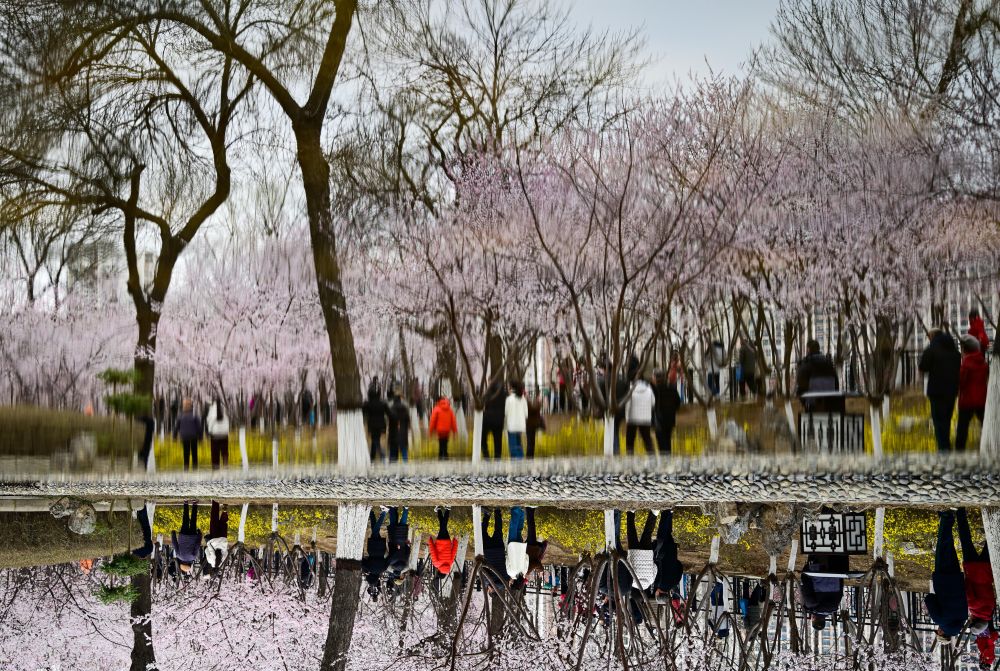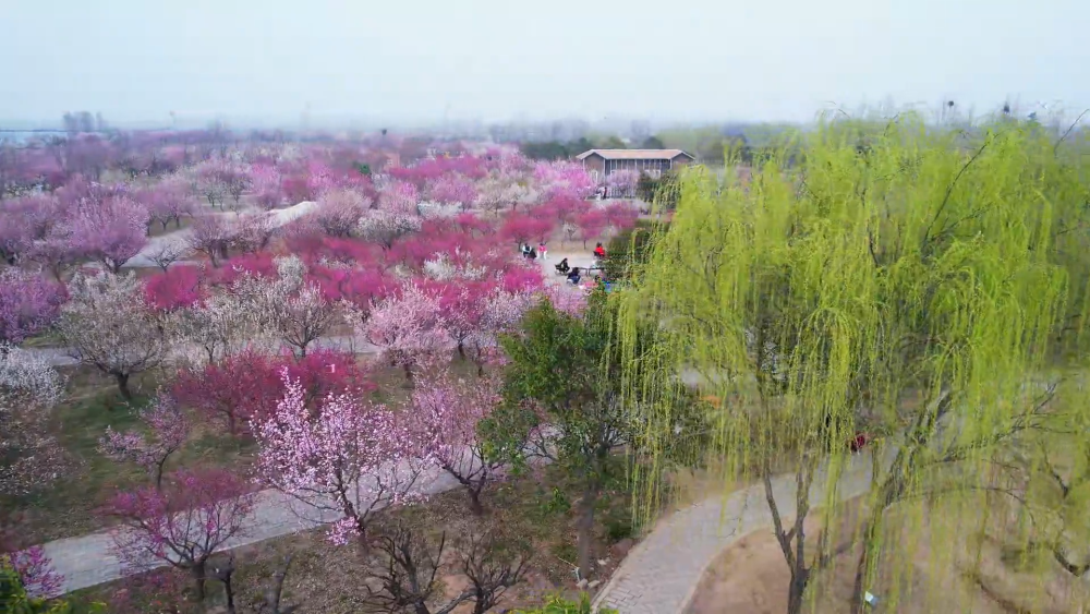 春日裏,鄭州市惠濟區黃河灘地公園黃河梅園中的梅花次第開放,如雲似霞,春意盎然。“花樣”美景吸引了眾多遊客前來打卡。