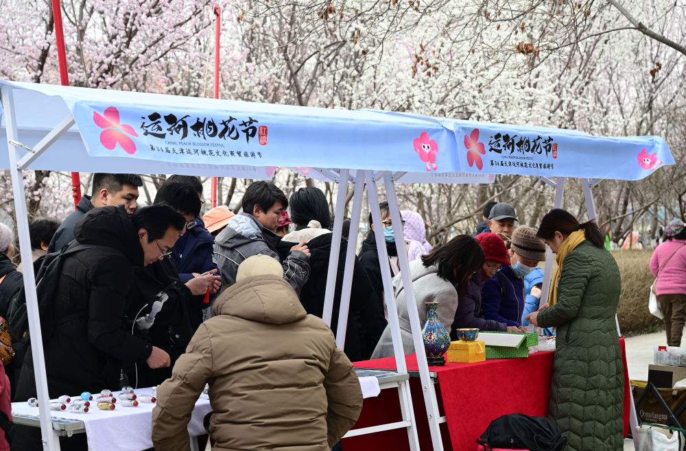 在天津市紅橋區北運河畔,桃花進入盛花期。第34屆天津運河桃花文化商貿旅遊節拉開了帷幕。