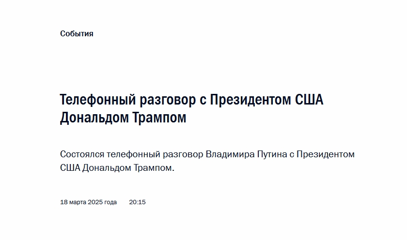 *·*雙方領導人繼續就烏克蘭局勢進行了詳細而坦誠的意見交換。普京對特朗普願意幫助實現結束(俄烏)衝突和減少人員傷亡的崇高目標表示感謝。