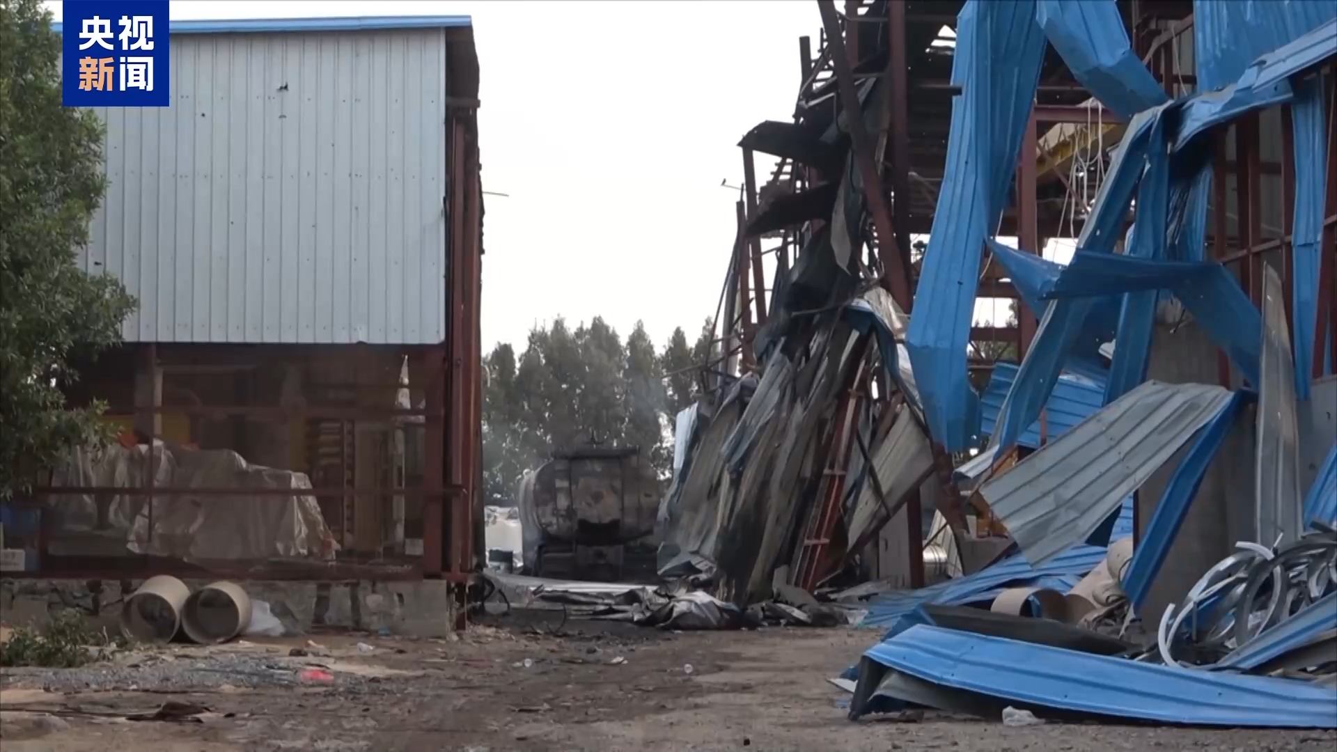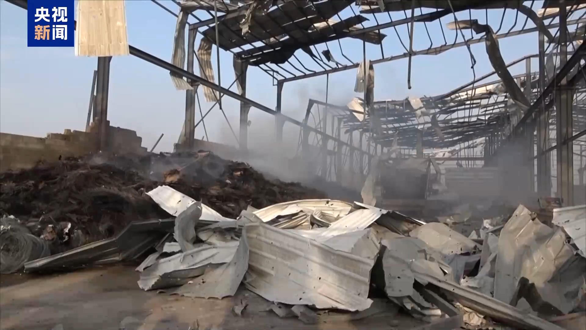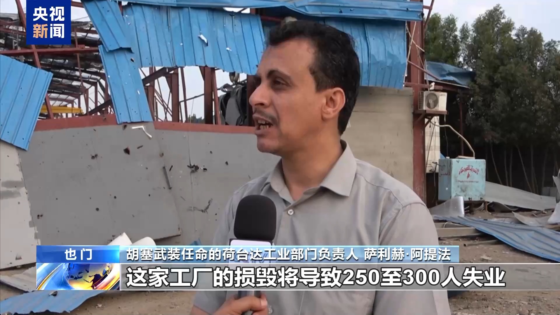 *總枱報道員 馬赫福茲·塔亞希:*這裏是位於荷台達市北部的薩利夫地區,這是一家由私人企業家建立的鋼鐵廠,但卻遭到了12枚美軍導彈的襲擊。