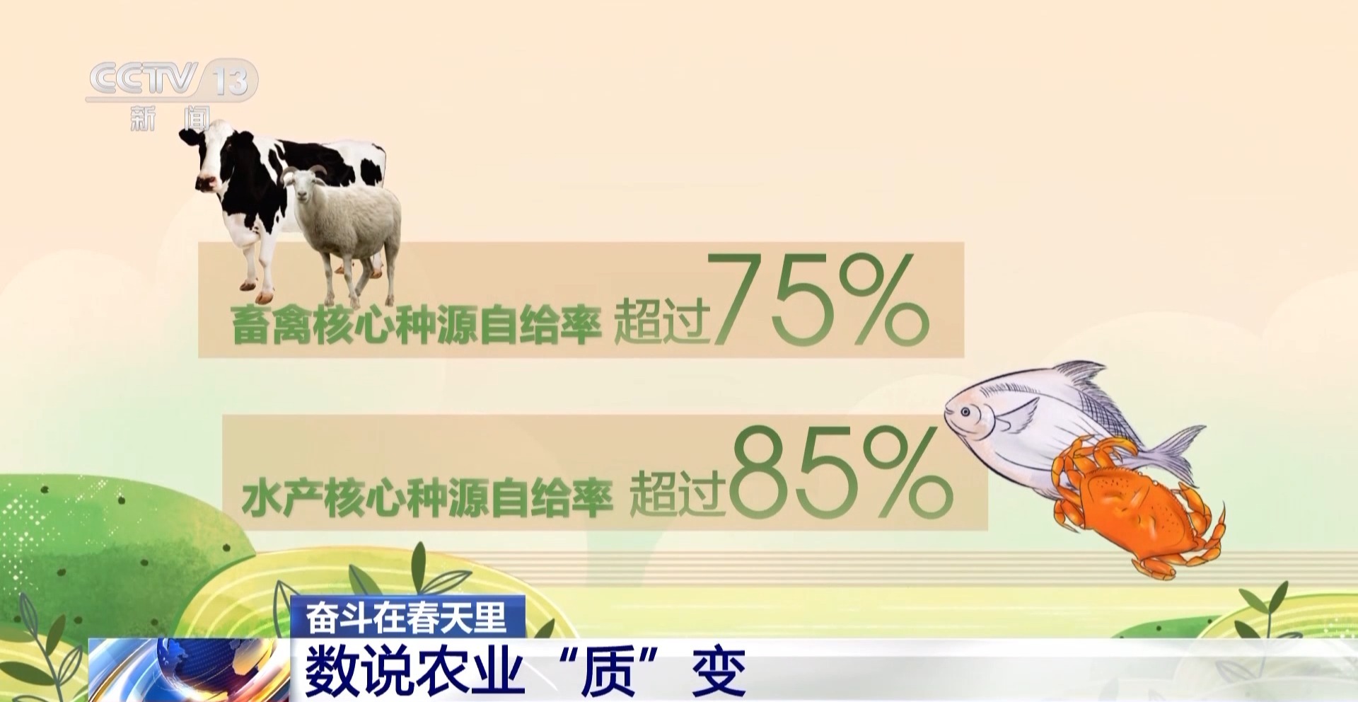 *種子是農業的芯片。*目前,我國農作物自主選育品種佔比在95%以上,畜禽、水產核心種源自給率分別超過75%和85%,主要糧食作物的良種近10年迭代升級了兩輪。